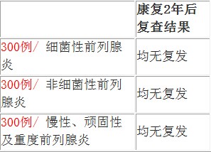 治疗效果:治疗初期尿频尿急等症状消失;治疗后一个疗程,经检查,前列腺症状完全消失;治疗后两个疗程,经检查,炎症细胞彻底消失;康复2年后复查,前列腺等症状不再复发,彻底康复。》》》点击咨询专家帮您分析病情 。