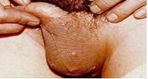 ◆亚急性阴囊湿疹:由急性阴囊湿疹转变而来,表现为阴囊皮肤轻度变厚和轻度糜烂,鳞屑较多,渗液甚少,仍有剧烈瘙痒。